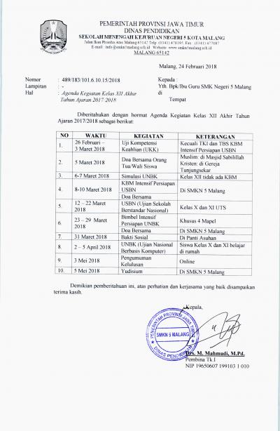 Agenda Kegiatan Kelas XII Akhir Semester Genap tahun pelaajran 2017-2018 dapat diunduh