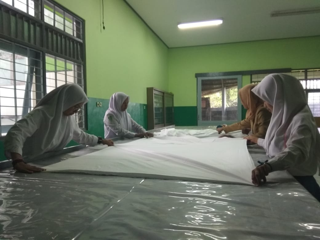 TEFA YANG BERJALAN DI KRIYA TEKSTIL SMKN 5 MALANG SEMAKIN MATANG. Baru-baru ini kriya tekstil mendapatkan bantuan alat dari kementrian. Alat-alat tersebut yakni screen sejumlah 20 buah, rakel 5 buah, bentangan kain batik 10 buah, dan penggantung kain 5 buah. Alat yang telah diterima tersebut sangat membantu dalam kegiatan TEFA yang telah diterapkan di jurusan kriya tekstil SMKN 5 Malang.