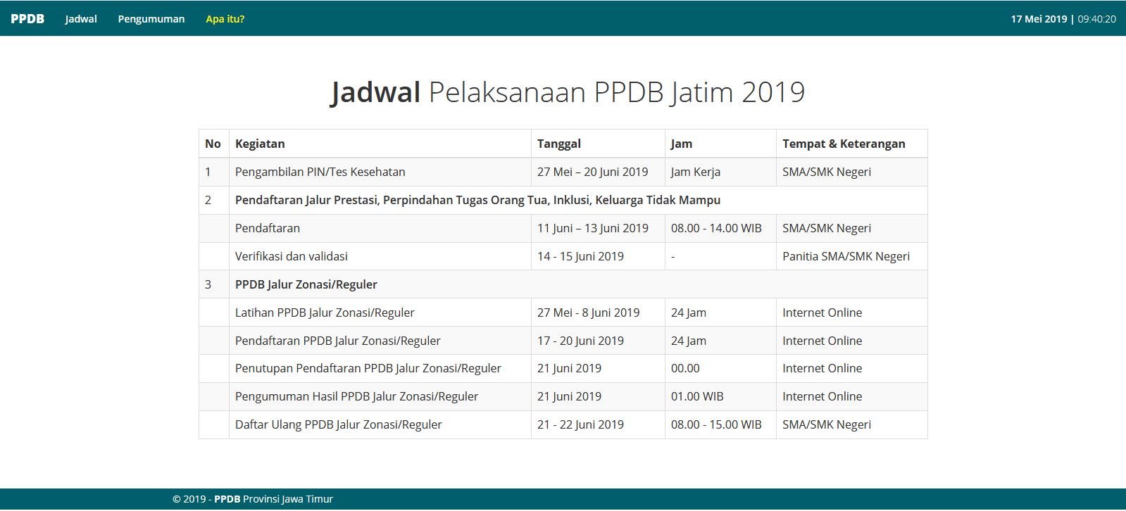Jadwal Pelaksanaan PPDB Jatim 2019