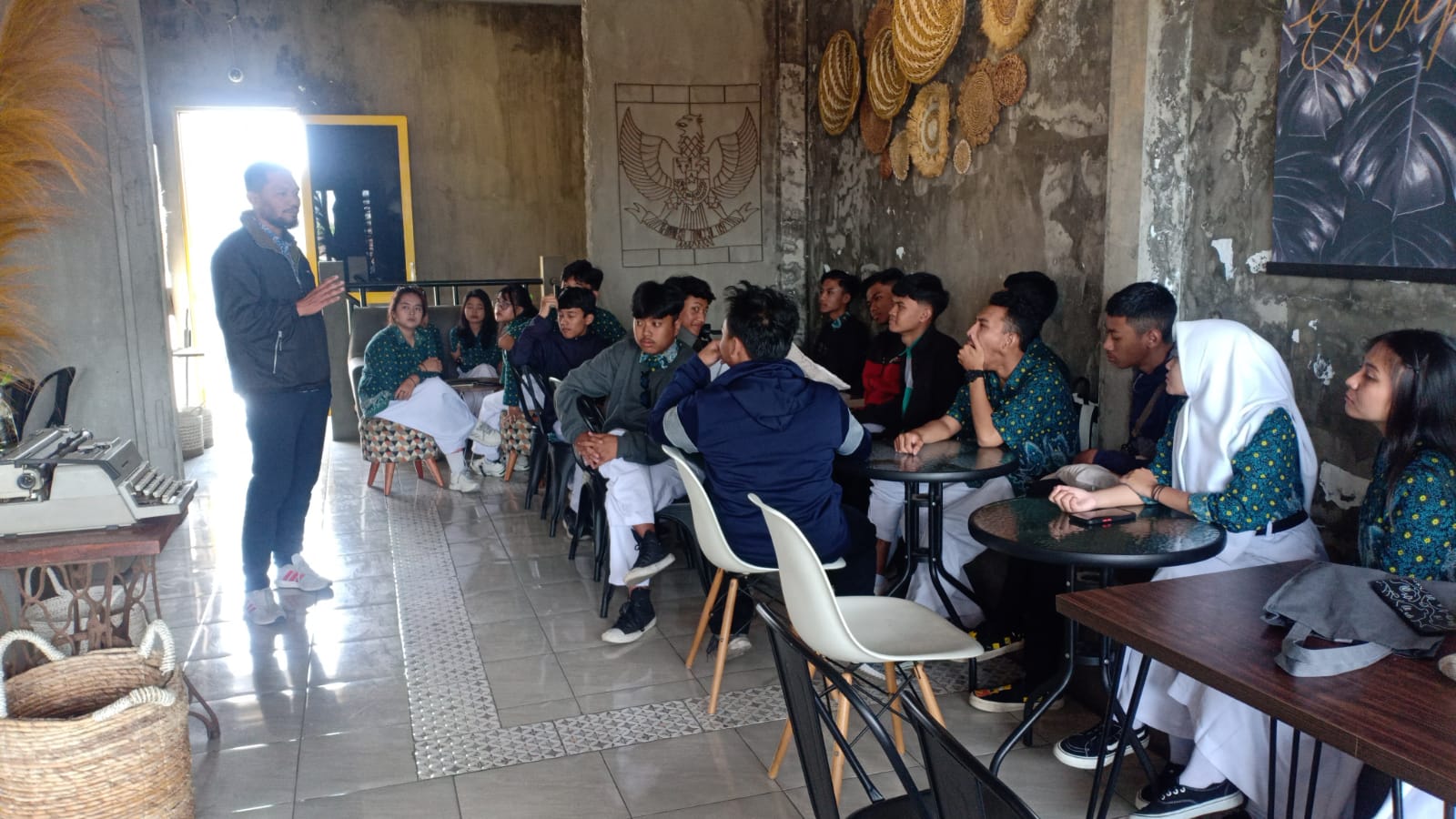 Siswa - siswi jurusan Multi Media (MM) SMKN 5 Malang tingkatkan kompetensi dengan belajar langsung produksi videografi di Kopi Langit 7 Malang bersama salah satu konten kreator, Hino Kertapati, Kamis (01/09/2022).