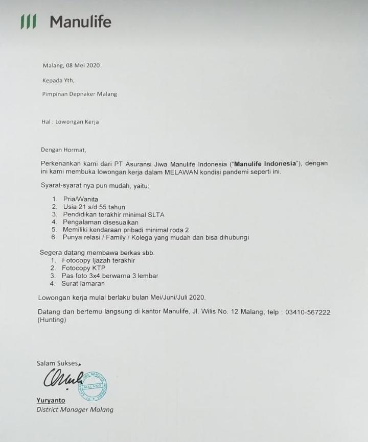 LOKER PT. Auransi jiwa Manulife